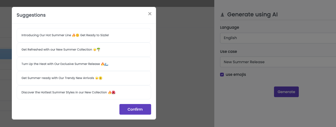 You will receive context-aware text suggestions for the field and channel you desire. For example, the title of a push notification or the body of an SMS.