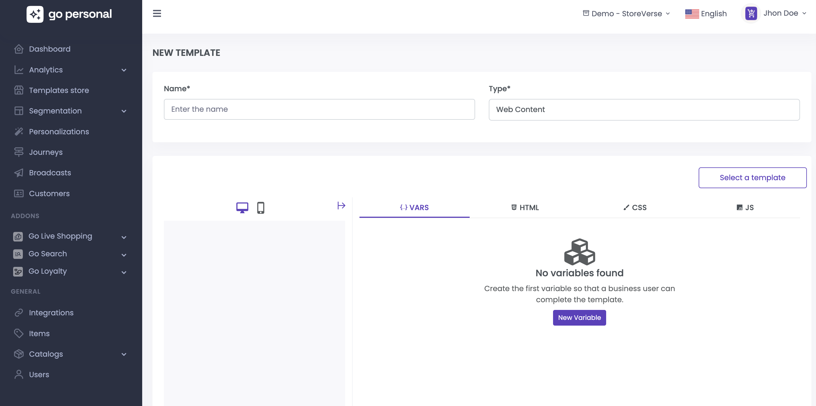 You can start the[ creation of a template from scratch](https://academy.gopersonal.ai/en/admin-ui/personalizations/experiences/new-variant-from-scratch) or select one of your template created previously.&#x20;
