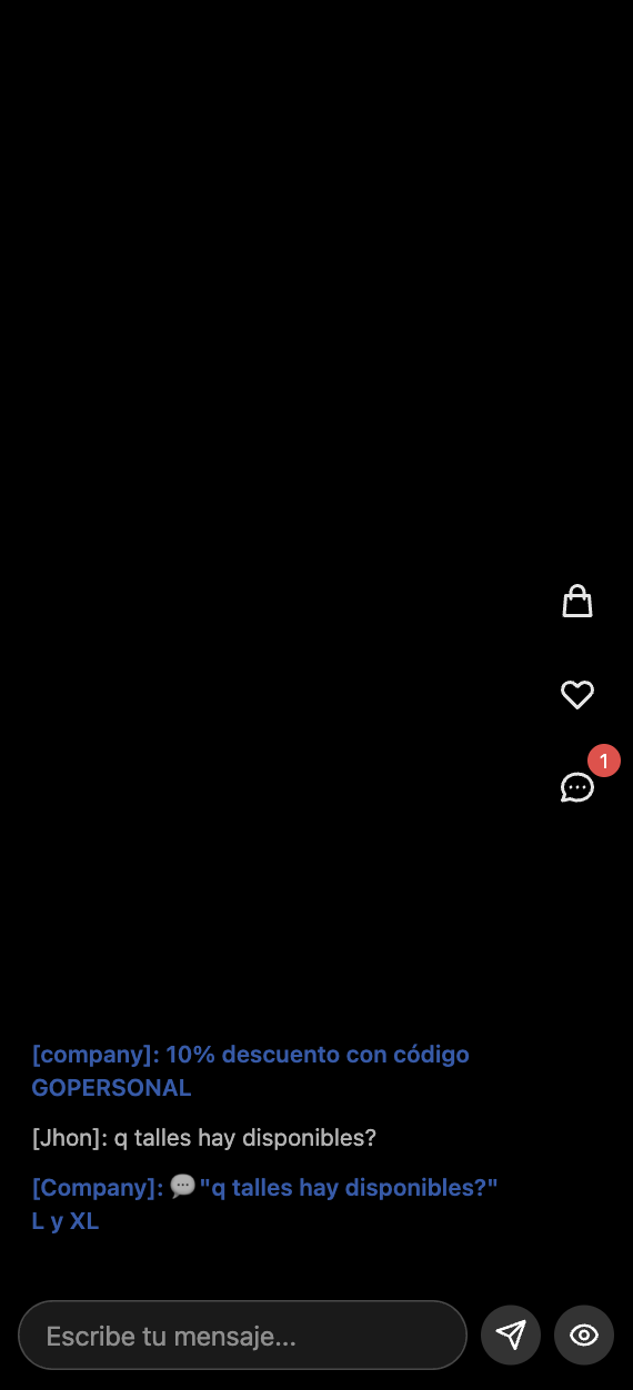 Una vez identificado el cliente puede ver productos, indicar que le gusta y ver el chat especifico para el (si el moderador contesta su pregunta por ejemplo)&#x20;