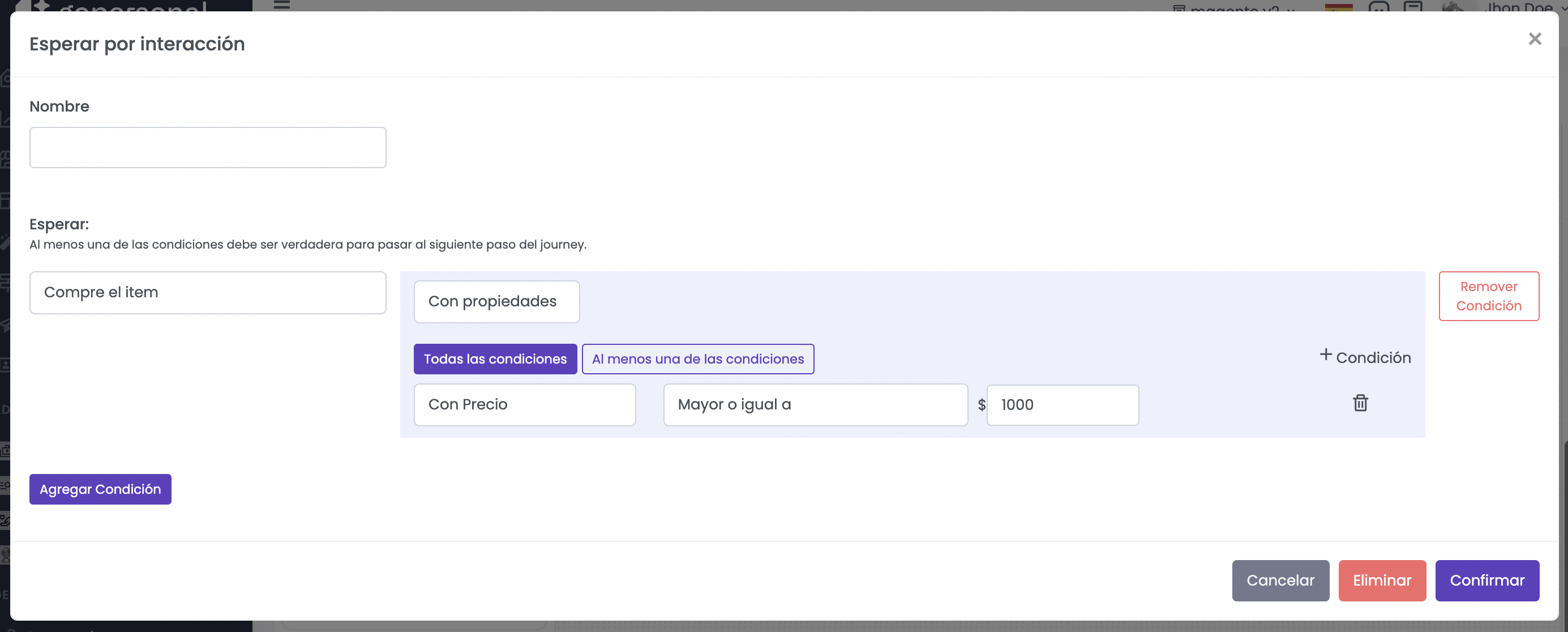 Esta flexibilidad garantiza que el journey avance tan pronto como ocurra cualquier interacción significativa por parte del cliente.